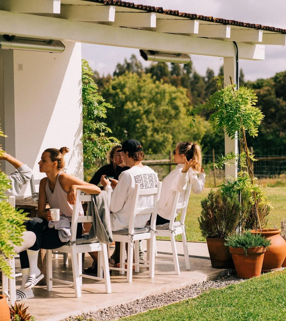 The retreat center boasts 11 elegant, coastal farm style bedrooms and 10 bathrooms, each bedroom opens to an outdoor courtyard.
